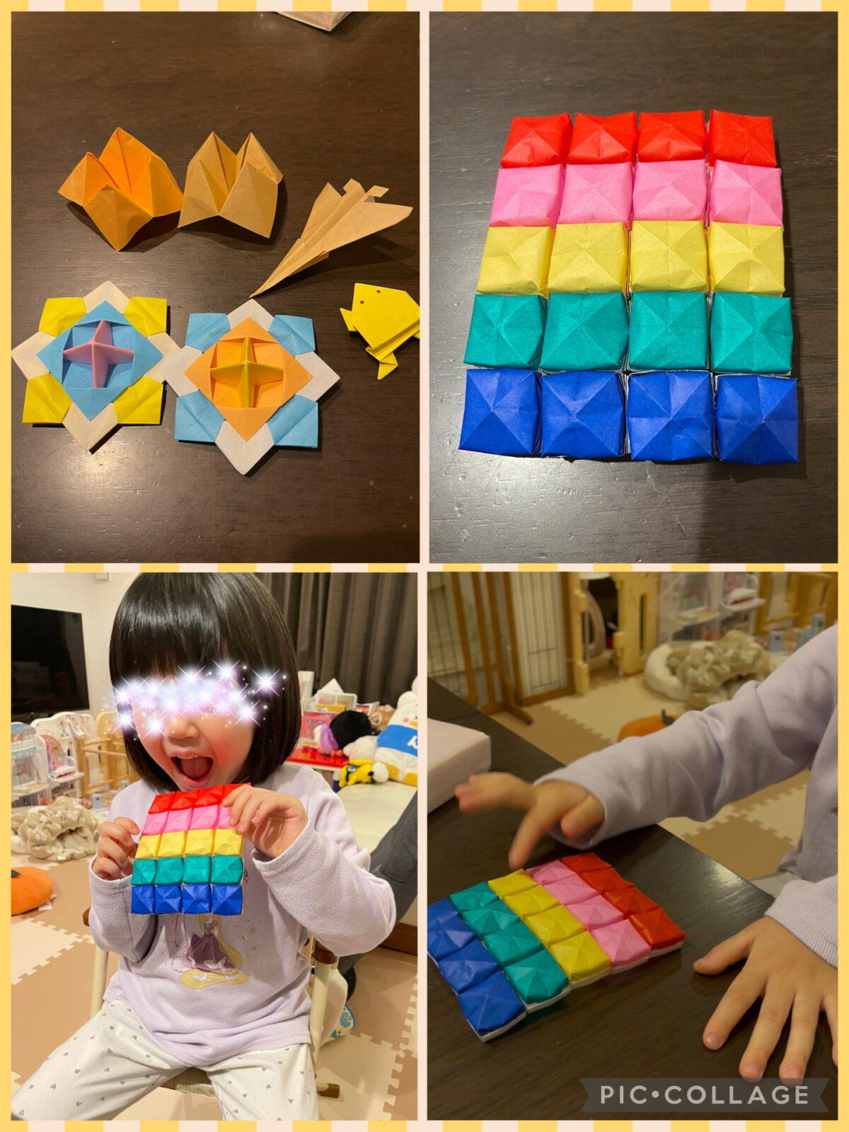 折り紙✨ 投稿日 2026/01/07 by eandeda 娘に「折り紙で遊べるものを作って欲しい」とリクエストされ、久しぶりに折り紙やりました😅 すごく回る駒やカエル、パクパク、飛行機、そして、プッシュポップ‼️なかなかの力作(笑)😅 喜んでもらえて良かったです✨ カテゴリ ブログ.